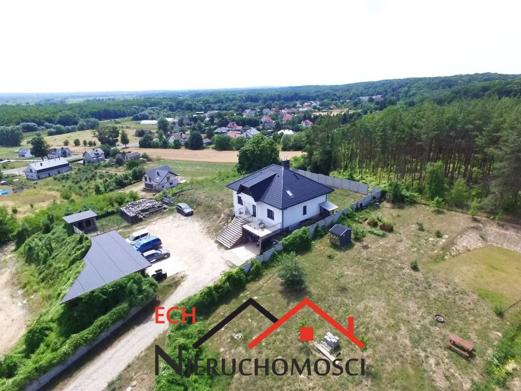 Dom wolonostojący wybudowany został w technologii murowanej z bloczków ceramicznych- porotherm gr. 24 cm., ocieplony styropianem 20 cm, elewacja przygotowana do położenia tynku strukturalnego. Dom pokryty jest dachówką ceramiczną. Wszystkie okna w domu są trzyszybowe, aluminiowe z roletami zewnętrznymi i moskitierami, na poddaszu okna Velux z roletami. Na wszystkich kondygnacjach podłogi są wyłożone płytkami w kształcie paneli podłogowych a w całym domu jest ogrzewanie podłogowe włącznie z piwnicą i garażem. Ściany domu malowane. Dużym atutem domu jest wyjątkowe i niepowtarzalne położenie na wzgórzu, dzięki czemu przez niemal wszystkie okna i z tarasu można podziwiać panoramę okolicy.