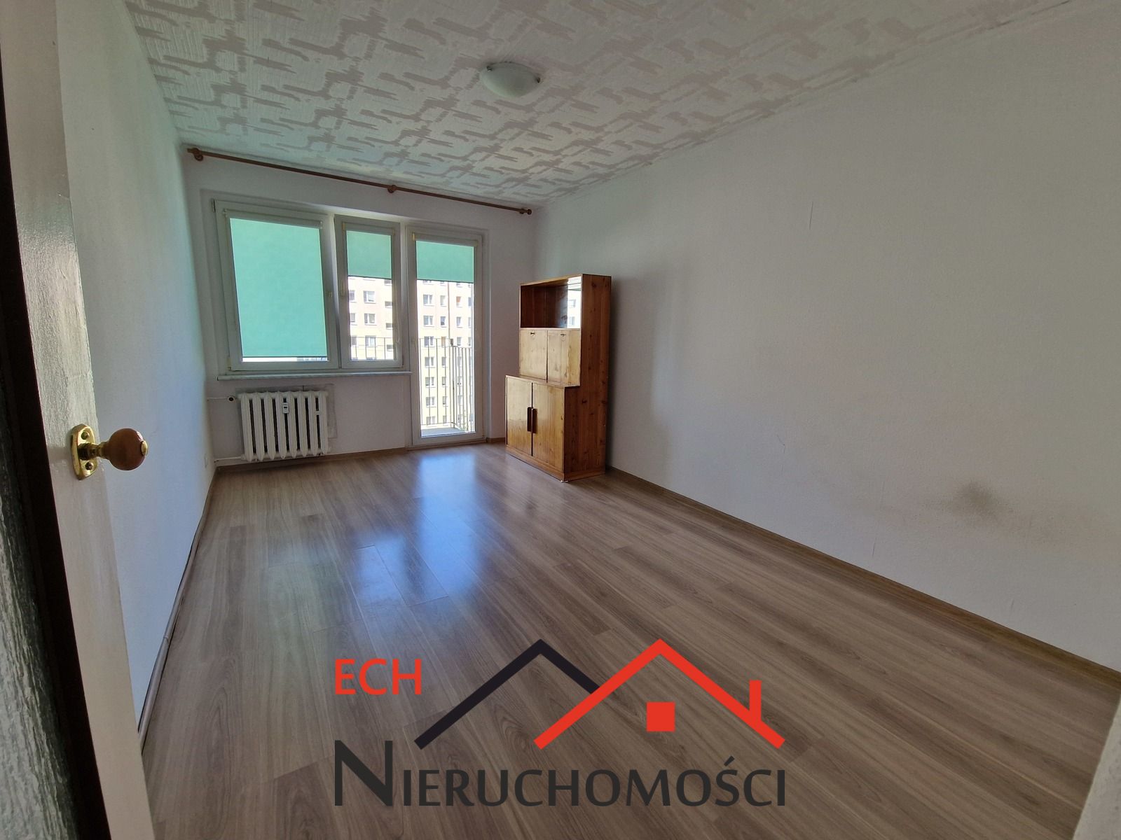 pokój dzienny z balkonem, dwie sypialnie, kuchnia, łazienka, wc oraz przedpokój.