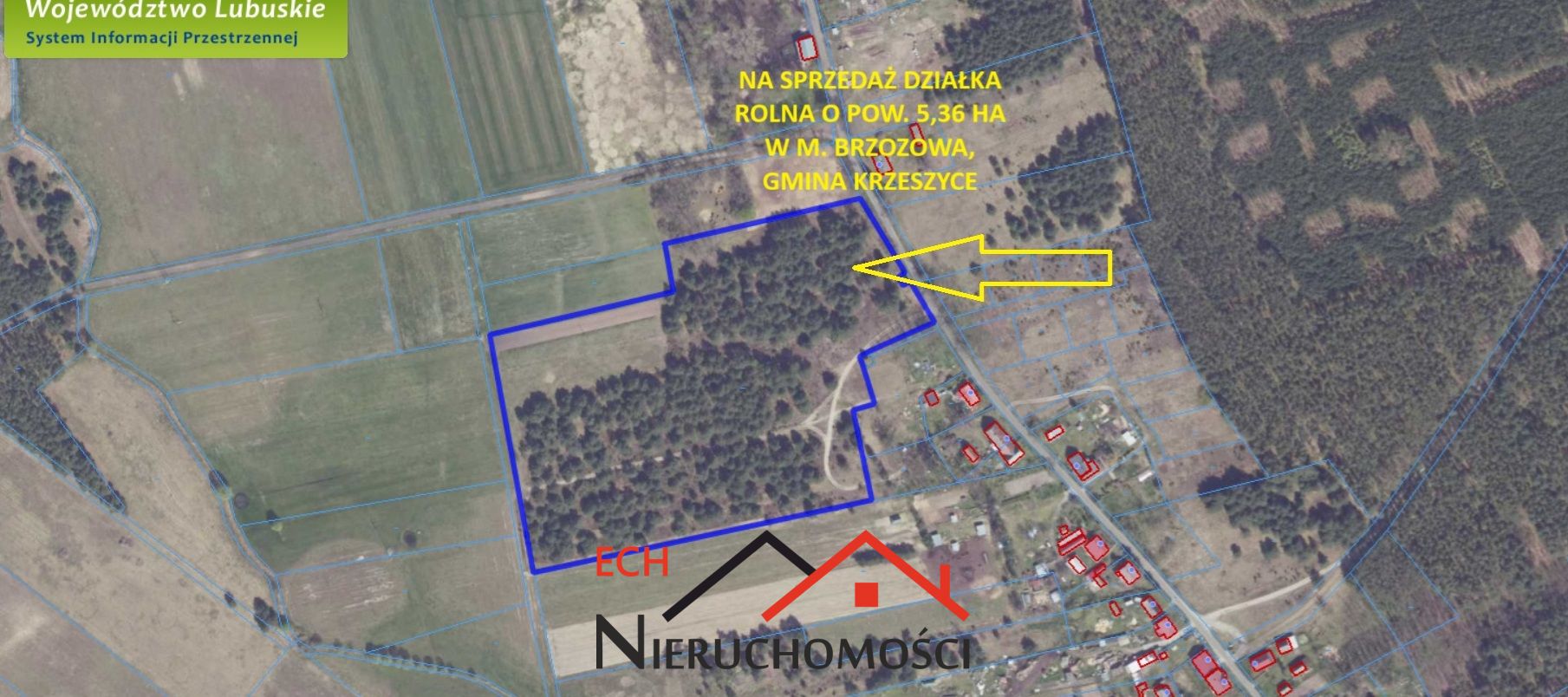 Nieruchomość niezabudowana o pow. 5,36 ha.