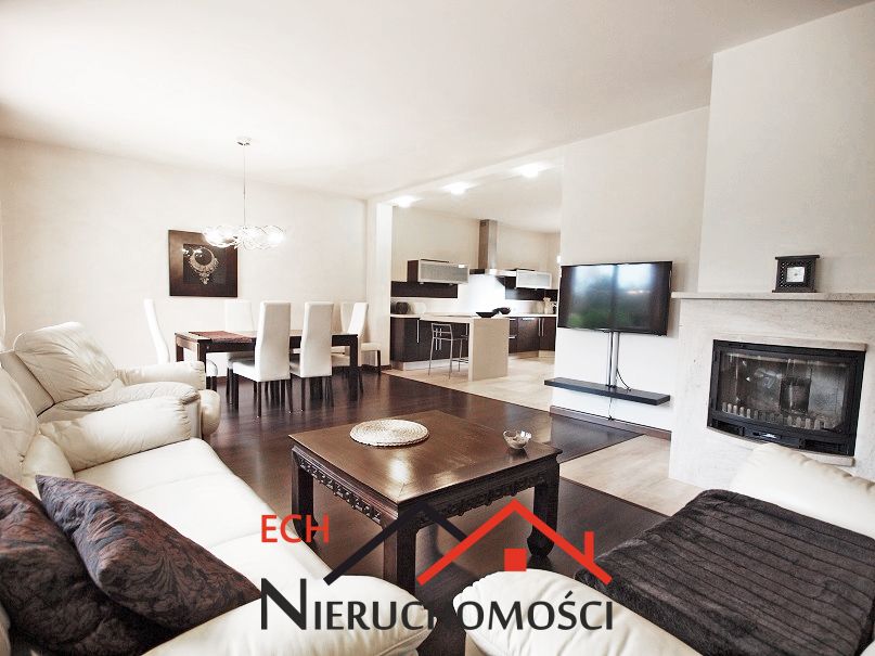 Parter to typowa strefa dzienna, salon z centralnie umieszczonym kominkiem ( płaszcz wodny) i wydzieloną strefą na jadalnię, otwarta kuchnia, 2 pokoje, garderoba, łazienka z wc oraz holl.