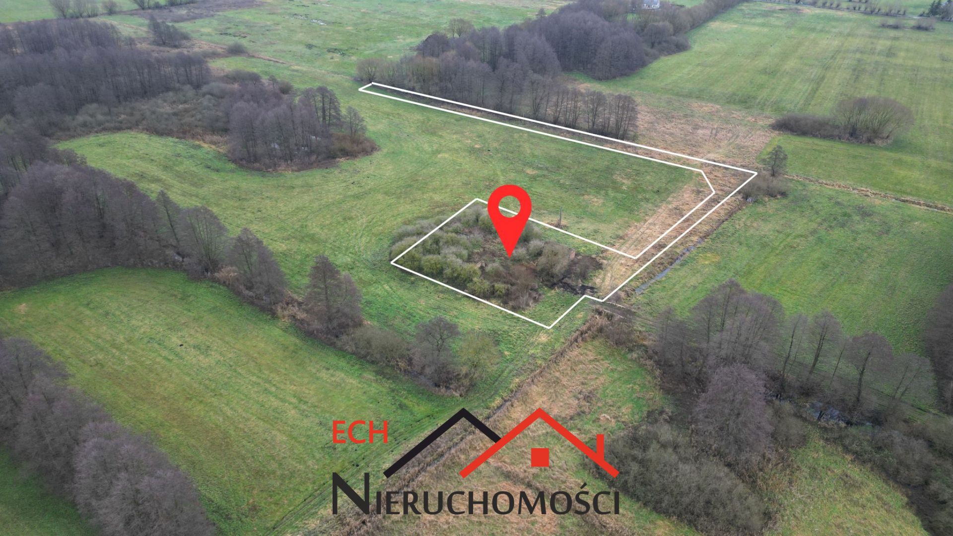 -W pobliżu znajdują się tereny rolne, skupiska drzew i ciek wodny,