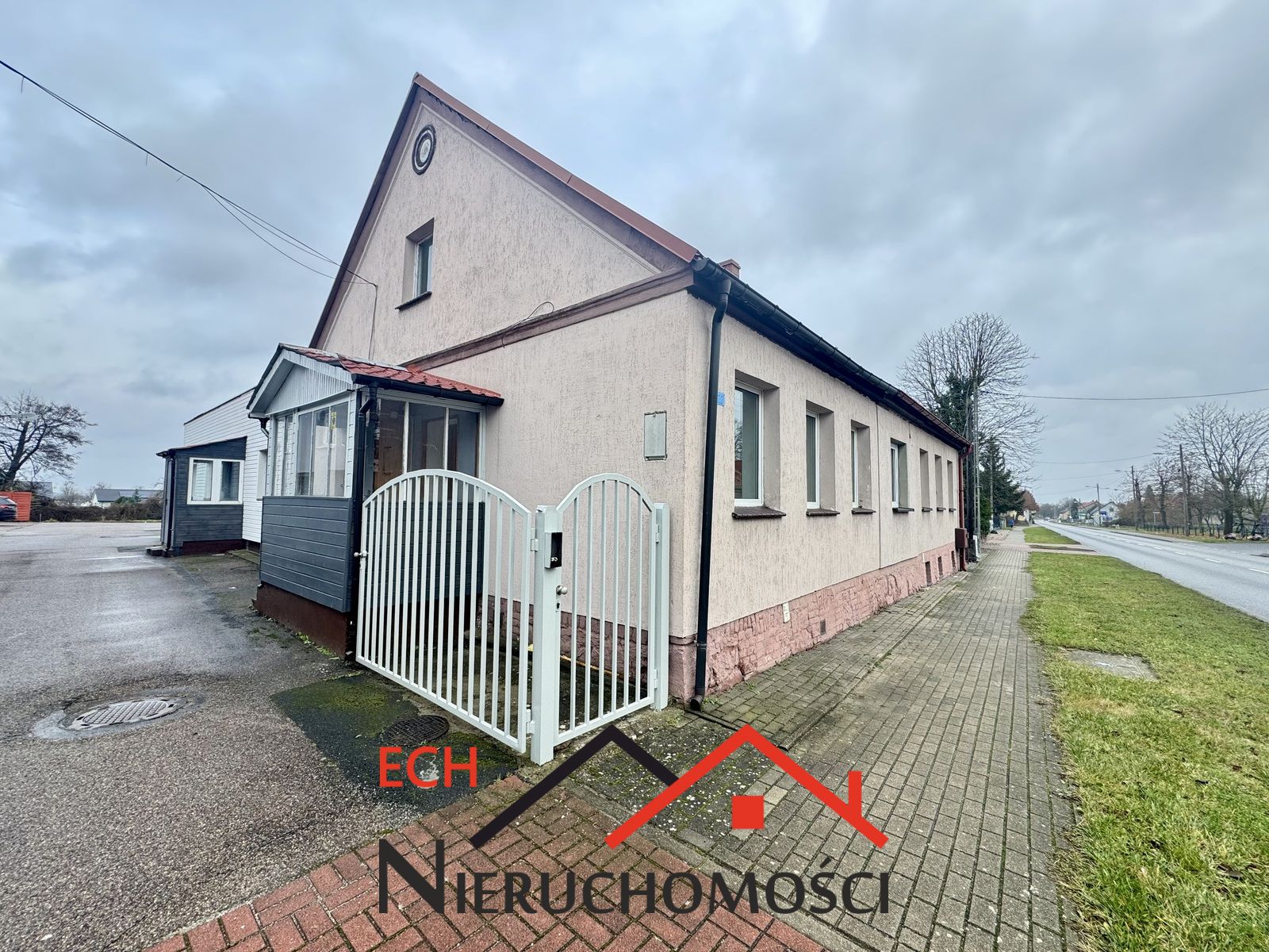 Budynek mieszkalno - biurowy o powierzchni 140 m2 składający się sali sprzedaży, pomieszczenia biurowego, pokoju, kuchni, łazienki, wc, kotłowni. Nieruchomość wybudowana z cegły, ocieplony styropianem, dach pokryty blachodachówką.