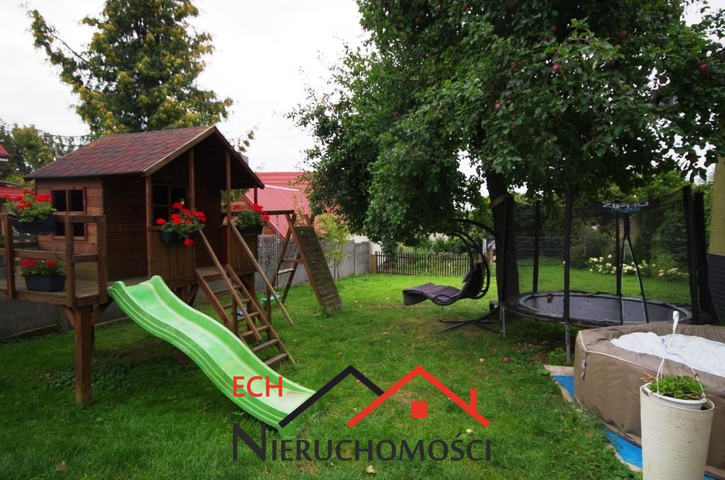 - duża, zadbana działka z nasadzeniami – idealna na ogród, rekreację czy spotkania z rodziną; dodatkowo domek drewniany dla dzieci