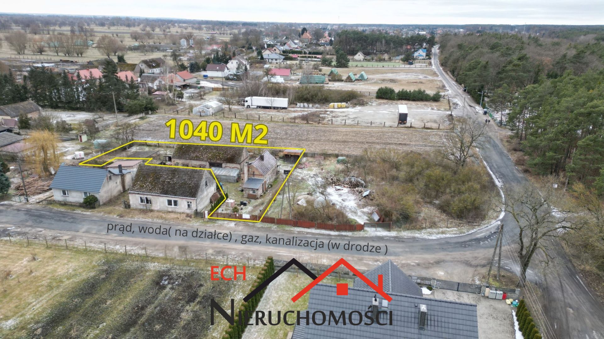 -Działka o pow. 1040 m² – z domem, stodołą (83 m²) i drewnianym garażem, działka budowlana