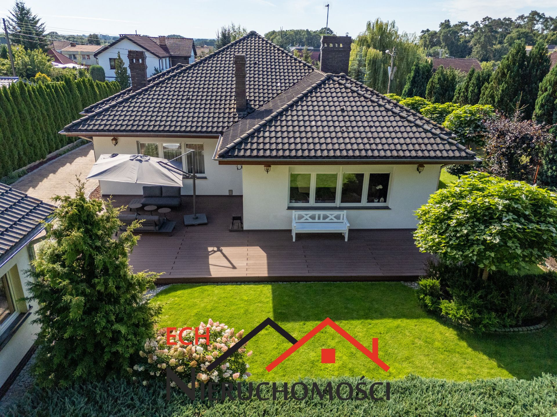 Działka, na której stoi dom o pow. 1235 m kw. jest przepięknie zagospodarowana licznymi nasadzeniami. Stoi na niej również garaż wolnostojący 18,5 m2, z pomieszczeniem gospodarczym nad garażem oraz drewutnią. Całość powierzchni użytkowej kompleksu garażu to 44,10m2.