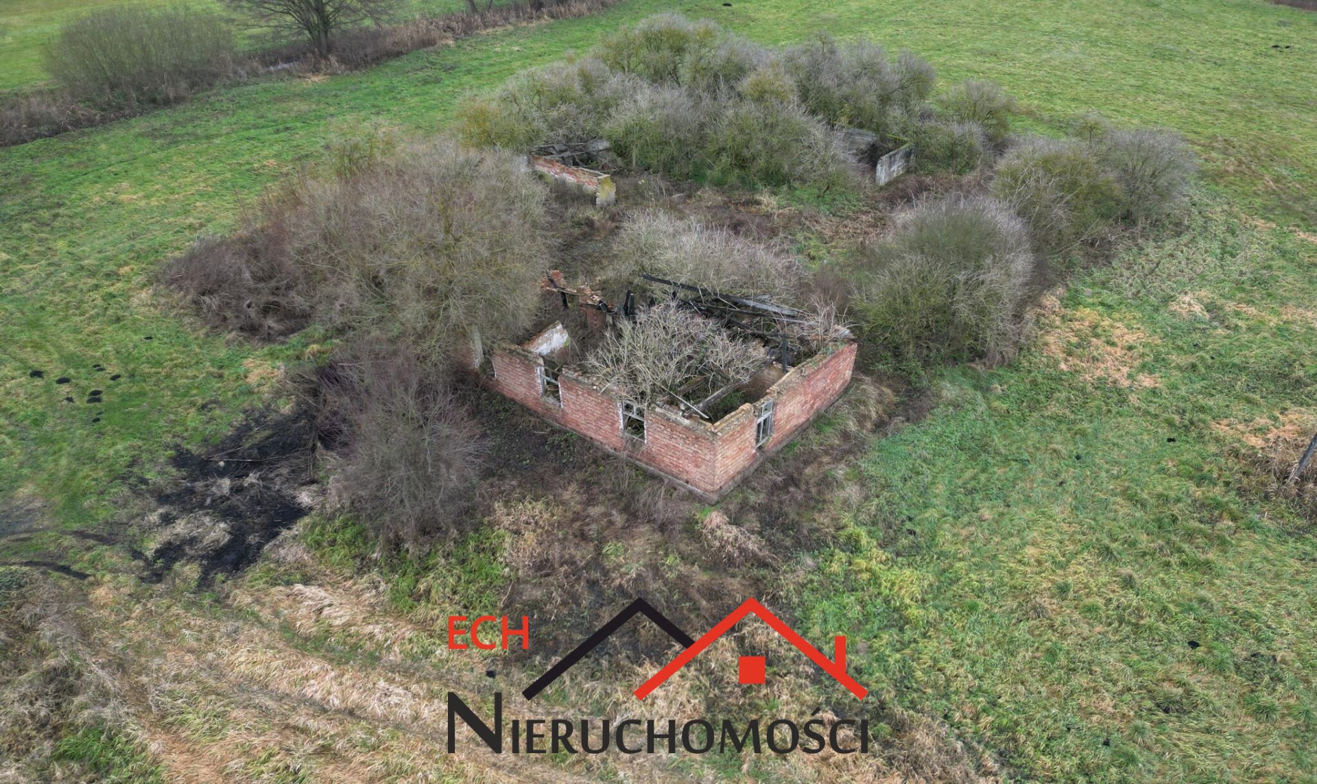 -Zabudowana pozostałościami murowanego budynku mieszkalnego i gospodarczego ( do rozbiórki)